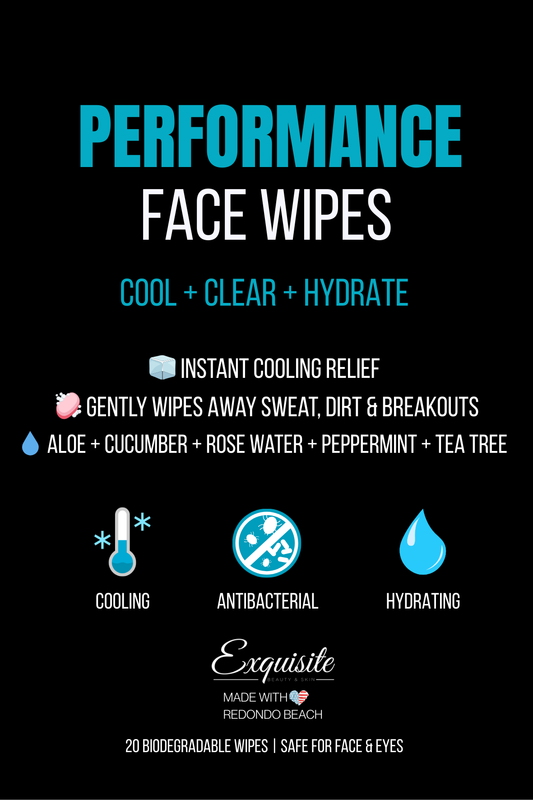 Performance Face Wipes are designed for athletes, teens, and anyone living life on the go. Made from premium cotton non-woven fabric, each wipe is infused with clean, effective botanicals like peppermint, cucumber, rose water, tea tree, and aloe to instantly cool, cleanse, and refresh—without stripping or irritating your skin.✅ Instant Cooling – Peppermint + Cucumber calm overheated skin