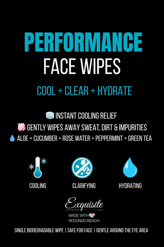 Performance Face Wipes are designed for athletes, teens, and anyone living life on the go. Made from premium cotton non-woven fabric, each wipe is infused with clean, effective botanicals like peppermint, cucumber, rose water, tea tree, and aloe to instantly cool, cleanse, and refresh—without stripping or irritating your skin.✅ Instant Cooling – Peppermint + Cucumber calm overheated skin